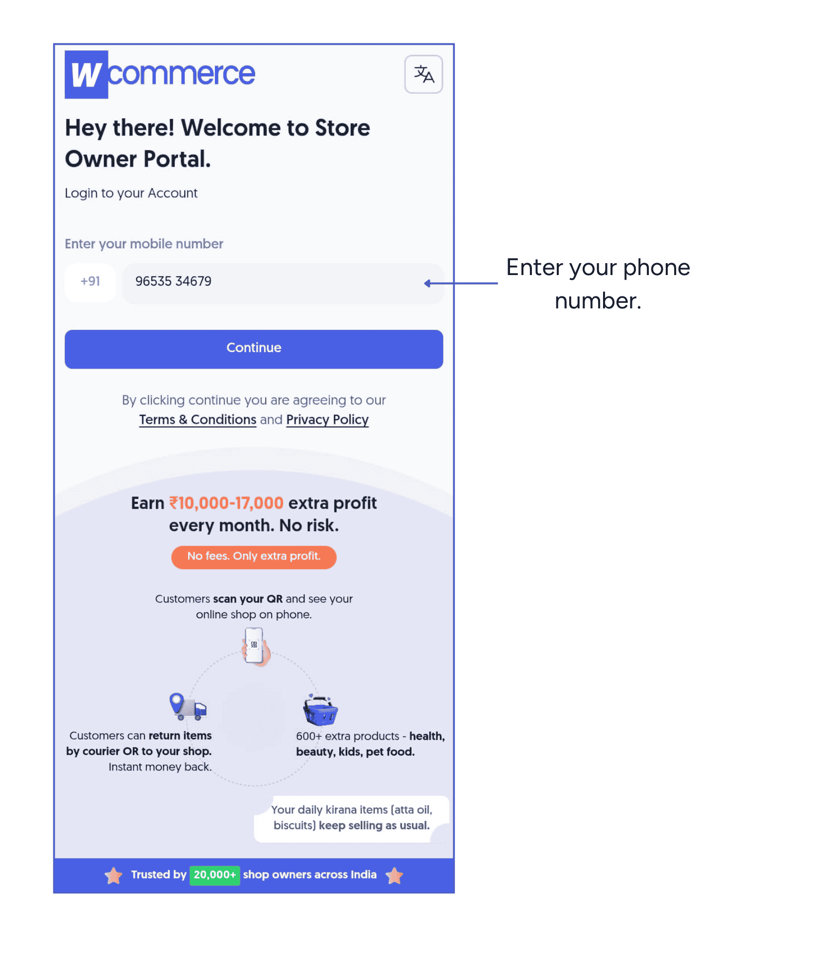 To get started, open the Wcommerce.store & click on Get Started on your phone or desktop.