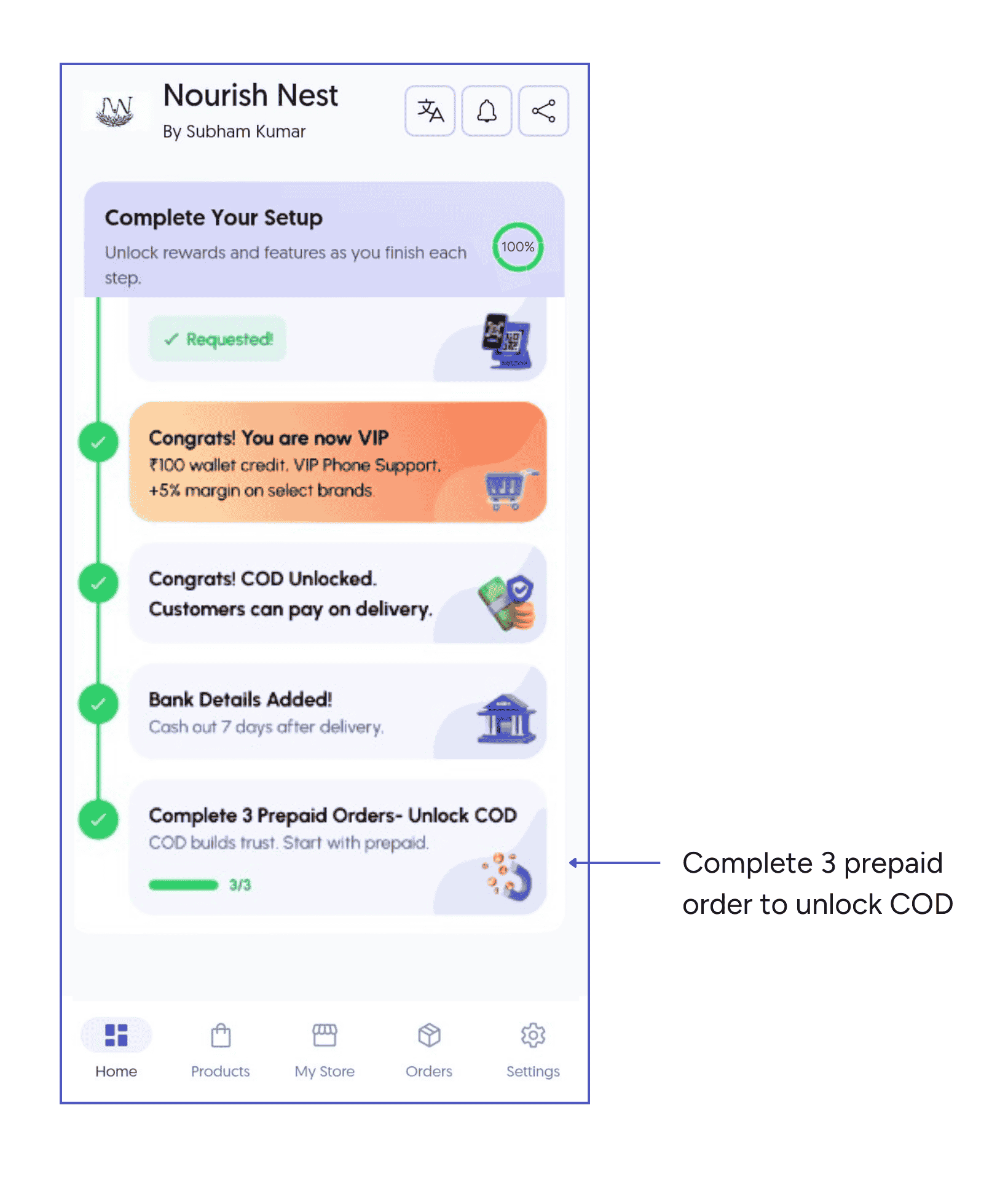Completing this checklist ensures your store runs smoothly and earns more. From getting your free QR stand to unlocking COD, each step helps you grow faster and serve your customers better.